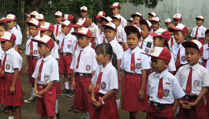 One of many great Indonesian school traditions: Before the official school activities start the pupils first must clean the school yard, classrooms and offices.