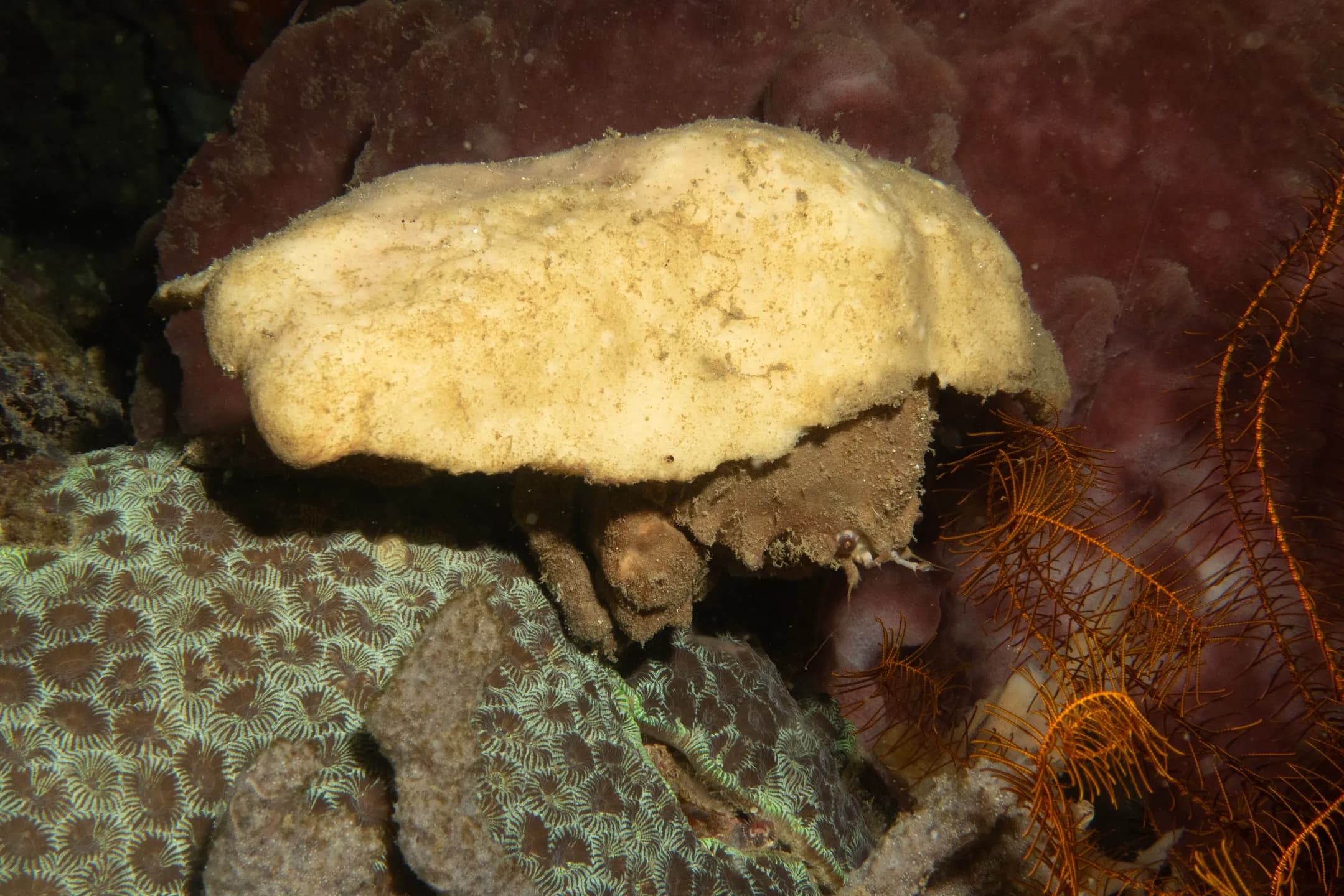 Many soft and hard coral species live and thrive here, in the nutrient-rich waters of the Lembeh Strait.